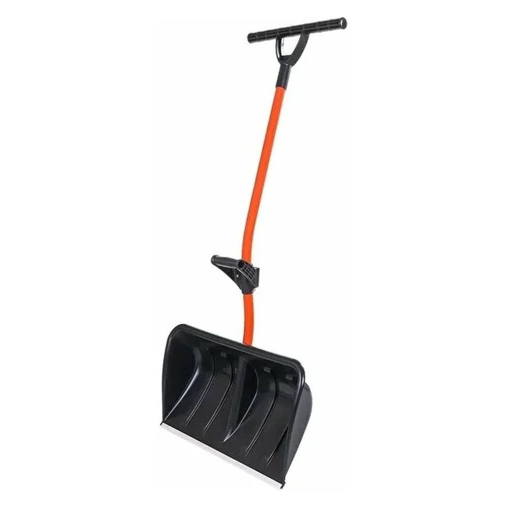 Т-образная ручка Две эргономичных рукоятки Регулируемая дополнительная рукоять Широкий ковш Металлический черенок Металлическая планка по длине ковша Прочный пластик |