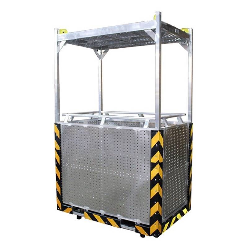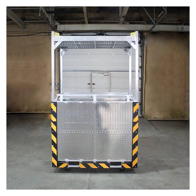 Окрашена в предупредительные цвета Грузоподъемность 300кг Комфортное размещение двух человек с инструментом Легкий вес за счет использования алюминиевых сплавов Крыша люльки выдерживает падение стального шара массой 7кг с высоты 2м Крыша кабины расположена на высоте 2 метра Удобство перемещения погрузчиком |