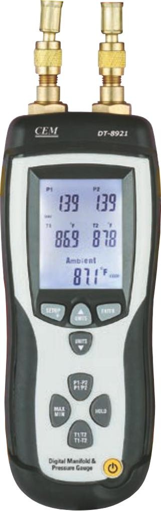 CEM DT-8921 — это высокоточный широкодиапазонный прибор, который может измерять, записывать и анализировать давление, температуру, вакуум и другие данные, а также хранить все данные измерений, системы кондиционирования воздуха HVAC, автомобильные системы кондиционирования воздуха, тепловые насосы и системы охлаждения, техническое обслуживание и анализ профессиональных измерительных приборов.