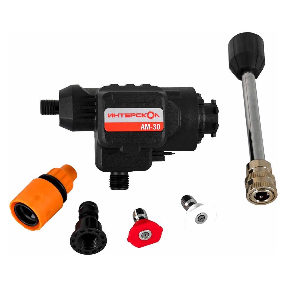 Модуль минимойки ИНТЕРСКОЛ АМ-30 предназначен для установки на привод ИНТЕРСКОЛ МультиМАКС ММ-18ВМ. Компактная мойка высокого давления поможет отмыть разнообразные поверхности: автомобиль, колеса, шанцевый инструмент и тому подобное даже там, где нет сети 220В и шланга с водой.