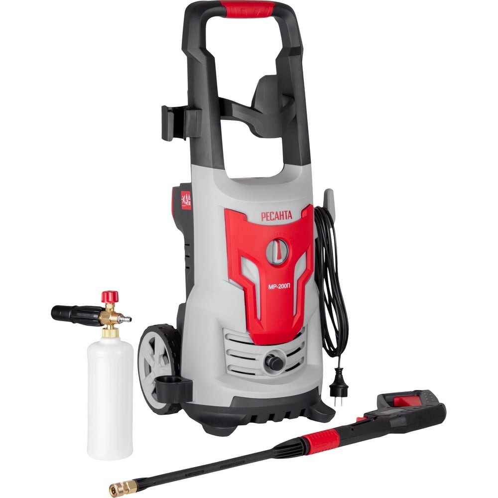 <div class="catalog-product-attributes__white-gradient"></div> Мойка высокого давления Ресанта МР-200П – функциональный и мощный прибор для мытья легковых и грузовых автомобилей, фасадов и прочих поверхностей. Благодаря большой мощности мотора (2,5 кВт) и высокому рабочему давлению (130 бар), он отлично справляется даже с сильными загрязнениями. К тому же мини-мойка комплектуется профессиональным пеногенератором, наличие которого значительно упрощает процесс очистки поверхностей и транспортных средств. Он способен делает густую пену за короткое время. Применение различных аксессуаров существенно расширяет функциональность прибора.Мойка высокого давления оснащена алюминиевой помпой, которая отличается высокой надёжностью и длительным сроком службы. Двигатель имеет защиту от перегрева и воздушное охлаждение. Пистолет-распылитель оснащён предохранительным клапаном, защищающим от случайного пуска, а для защиты внутренних компонентов установлен фильтр воды грубой очистки.Мини-мойка комплектуется шлангом длиной 8 м |