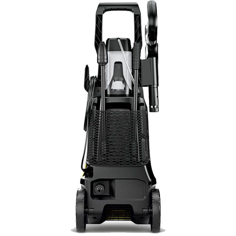 Съемный бак для моющего средства объемом 1 литр расположен сверху на аппарате Принадлежности размещаются на корпусе аппарата Колеса - для удобства транспортировки Имеет крюк для хранения шланга и кабеля |
