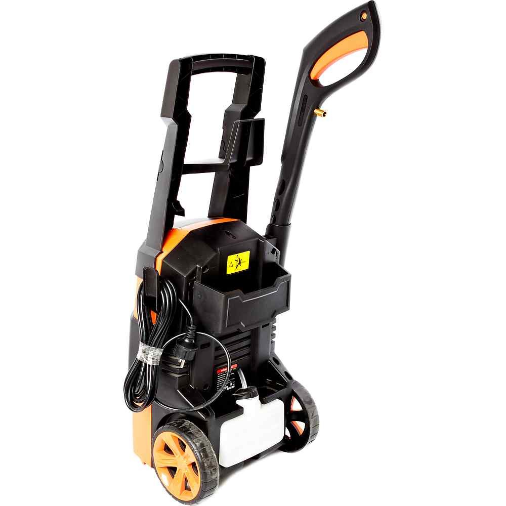 Поворотный выключатель на передней панели Разъемы для подключения шлангов на передней панели Встроенные транспортировочные колеса Размещение пистолета, насадок и сетевого кабеля на корпусе Металлическая помпа с плунжером из нержавеющей стали Универсальный коллекторный электрический двигатель Сопло имеет бесступенчатую регулировку давления и ширины потока Встроенный бак для моющего средства Возможность применения фильтра предварительной очистки воды |