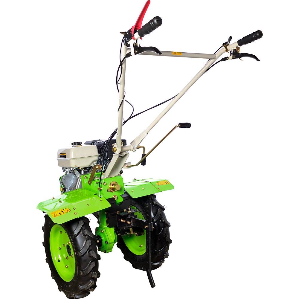 Вал отбора мощности для присоединения навесного оборудования Оборудован рычагом аварийной остановки Большие пневматические колёса Мощный бензиновый двигатель Разборная рукоятка и сошник для удобства перемещения и хранения Возможность выбора скорости вращения фрез Наличие задней скорости облегчает освобождение культиватора при его застревании Большая ширина обработки - эффективная и быстрая работа |