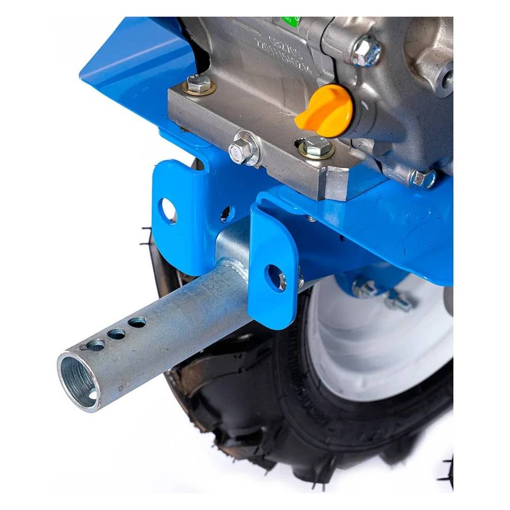 Культивация на 4-8 фрезах Скорости: 2 вперед/1 назад Редуктор в алюминиевом корпусе Регулировка руля по высоте и углу поворота Функция разобщения колес |