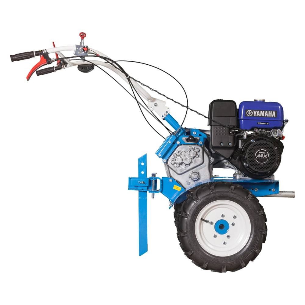 Защитный кожух оберегает от попадания в оператора земли и камней Маслонаполненный, шестерёнчато-цепной редуктор в алюминиевом корпусе На машину можно установить 4, 6 или 8 фрез Бензиновый двигатель Yamaha MX300 обеспечивает экономию топлива Функция разобщения левого колеса - легкий разворот |