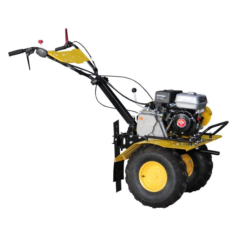 Полная разблокировка выходного вала - малый радиус разворота мотоблока Широкий выбор скоростей (4 вперед/2 назад) Управление сцеплением и разблокировкой осуществляется через гибкие тросы Рычаг управления дроссельной заслонкой имеет встроенную функцию остановки двигателя Бампер Широкие 180мм колеса - устойчивость Порошковая покраска всех деталей надежно защищает от коррозии Рукоятка переключения передач вынесена к оператору |