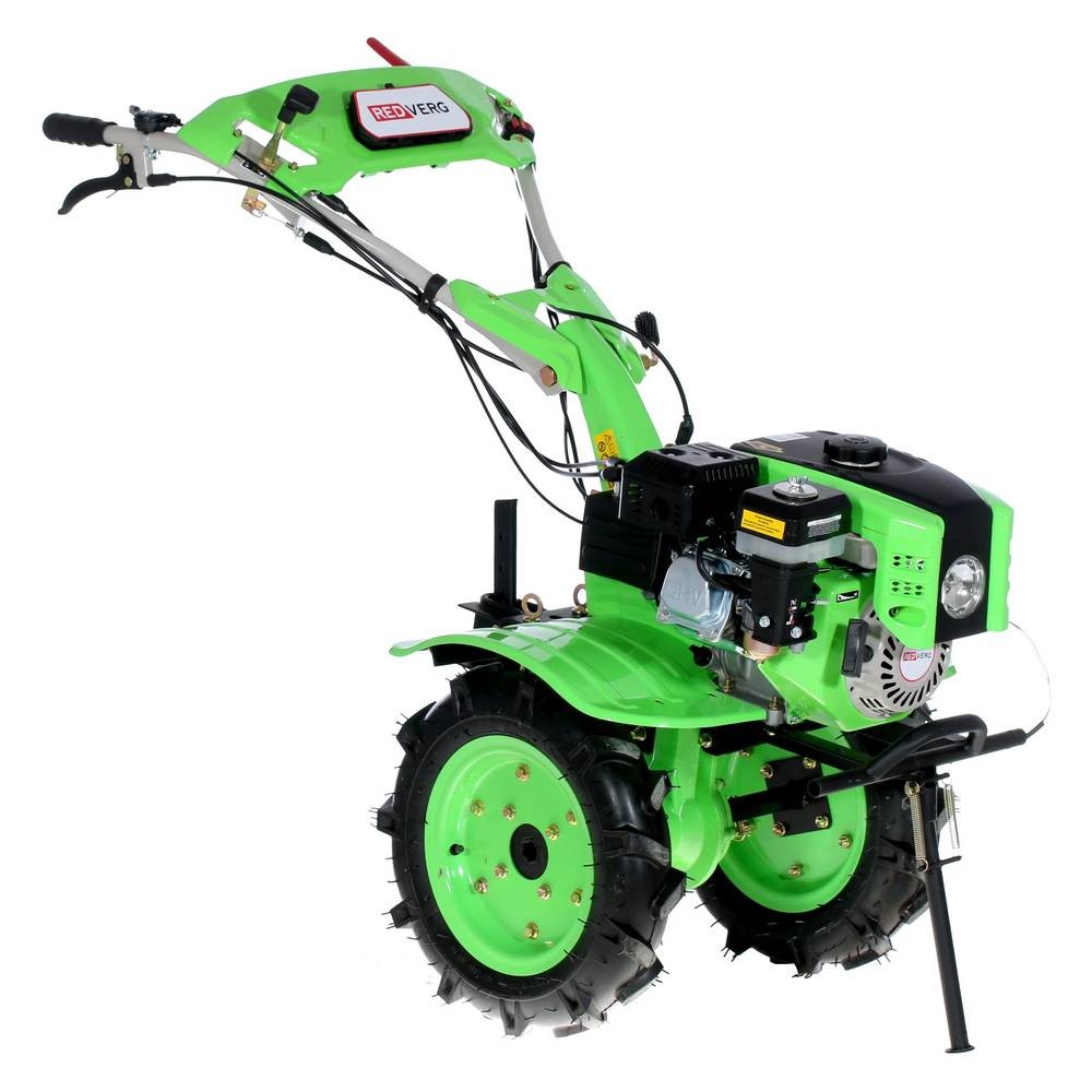 Вал отбора мощности для присоединения навесного оборудования. Защитный капот с фарой. Шестерёнчатый редуктор с корпусом из чугуна. Мощный бензиновый 4-х тактный двигатель Сошник позволяет регулировать глубину культивации |