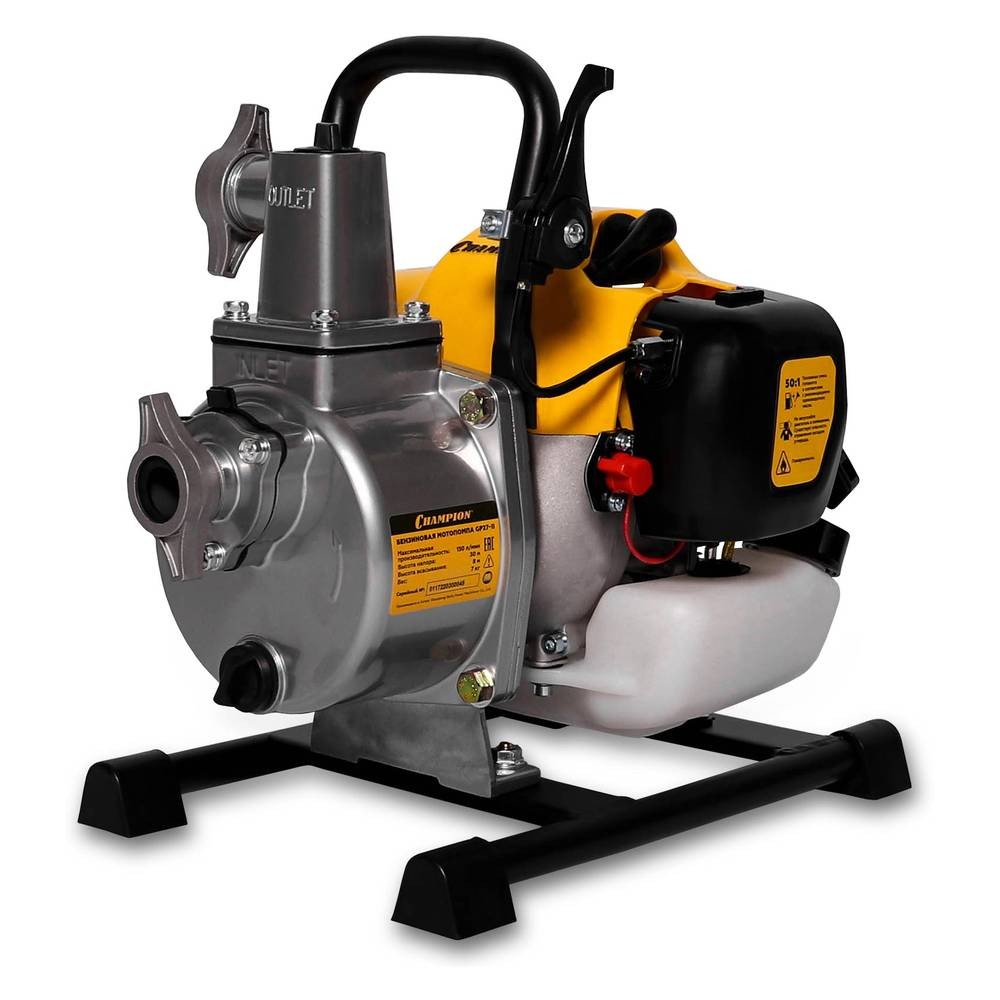 Мотопомпа бензиновая Champion GP27-II предназначена для перекачки чистых жидкостей. Оснащена патрубками диаметром 25мм. Отличается пропускной способностью 130л/мин. Двигатель работает на топливной смеси: бензин АИ-92 + моторное масло (50:1). Праймер обеспечивает легкий и быстрый запуск двигателя. В конструкции имеется рама с ножками для устойчивости мотопомпы на любой поверхности.