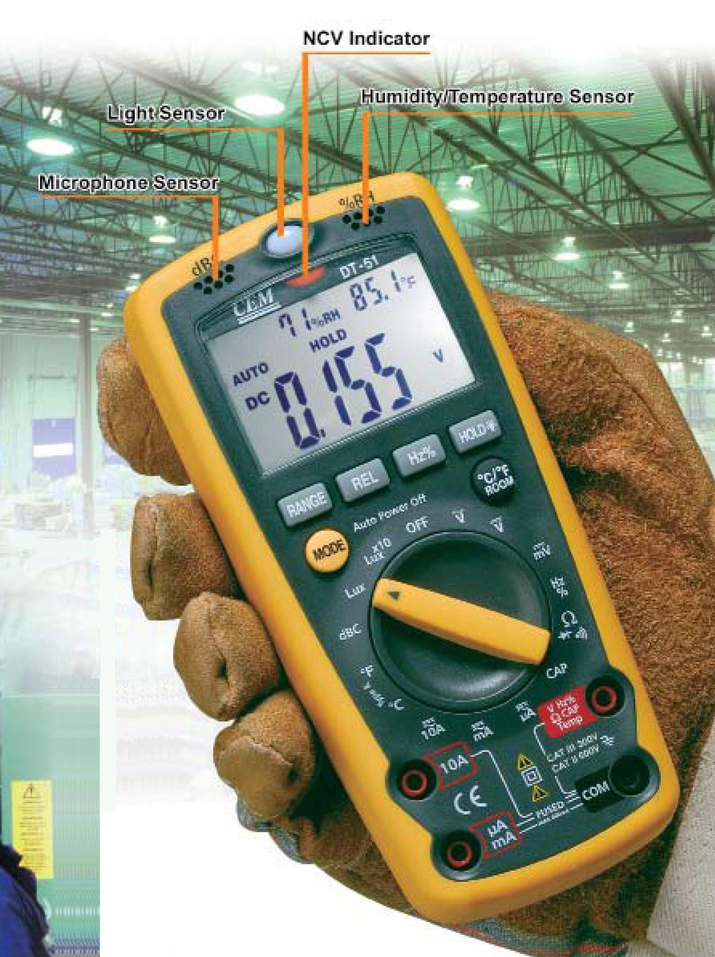 Мультиметр мультифункциональный DT-61 — помимо стандартных функций обычного мультиметра, это универсальное устройство оснащено дополнительными возможностями измерения светового потока, шума, влаги и бесконтактного индикатора напряжения.