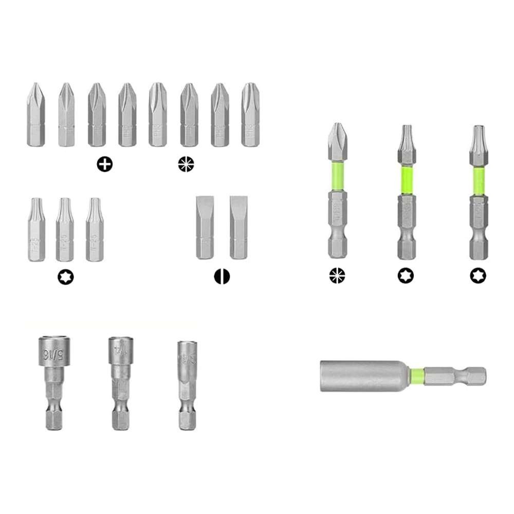 Изготовлены из стали S2 Универсальность Ударные биты имеют торсионную зону Магнитный держатель Удобный кес |