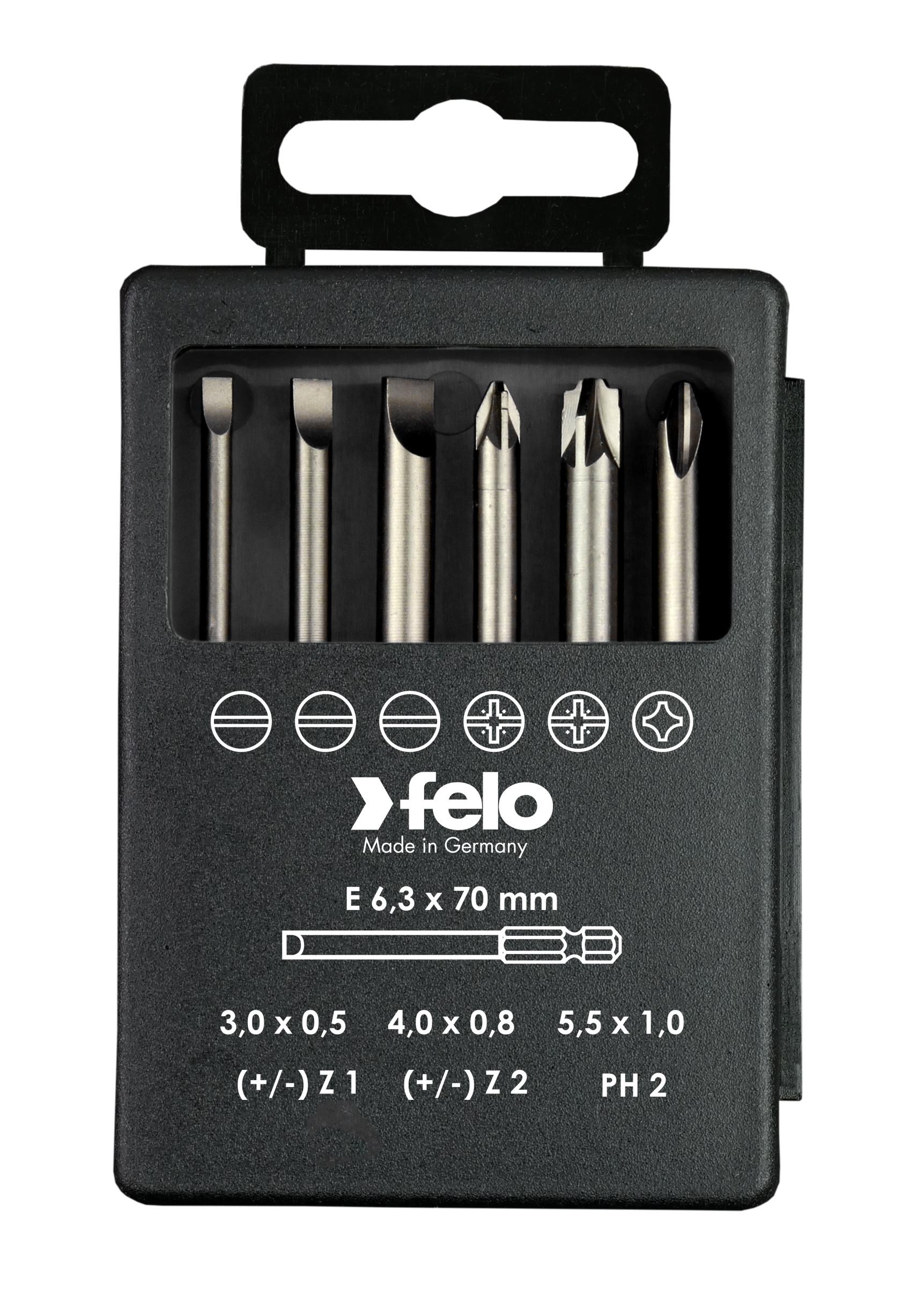 Набор бит Felo SL/Z (+/-) Industrial 70 мм, 6 шт (03192716) — это надежный и высококачественный комплект для монтажных и ремонтных работ. В наборе представлены биты, предназначенные для работы с электрощитами и различными типами крепежа. Биты изготовлены из высококачественной инструментальной стали CrMoV, закалённой в масле, что обеспечивает их долговечность и износостойкость. Основные характеристики: Размеры бит в наборе: SL 0,5x3,0 мм SL 0,8x4,0 мм SL 5,5x10 мм +Z 1 +Z 2 PH2 Длина бит: 70 мм. Компактный пластиковый кейс для удобного хранения и транспортировки. Прочные и долговечные материалы. Изготовлено в Германии, подходящее для профессионального ежедневного использования. Идеально подходит для использования с шуруповертами и отвертками.