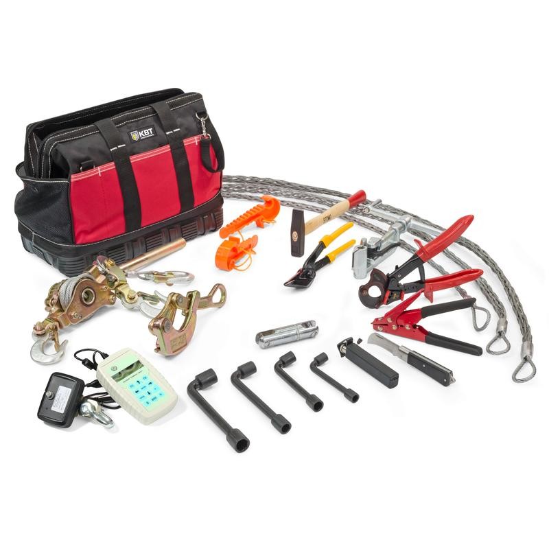 Тип набора: специализированный Состав набора: •Инструмент ИН-20 для натяжения стальных лент; •Ножницы НМ-20 для резки стальных лент; •Ножницы кабельные НС-32; •Лебедка ЛР-15; •Монтажный зажим МЗ-22; •Вертлюг ВМ-15; •Чулки монтажные (ЧМ-10/20, ЧМ-20/30, ЧМ-30/40); •Динамометр ЭД-20/2-2РМ; •Нож монтерский НМ-02; •Стриппер КС-25; •Инструмент для монтажа стяжек TG-03; •Клинья отделительные КО; •Ключи торцевые изогнутые (10, 13, 17, 19 мм); •Молоток ММ-300; —Всего в наборе: 19 предметов в сумке электромонтажника С-01
