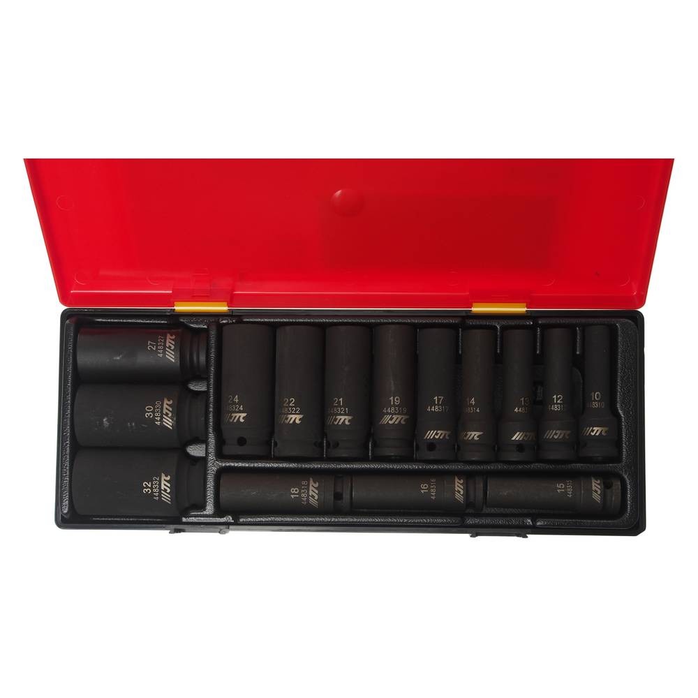 Набор головок торцевых глубоких ударных 12-гранных 1/2" 10-32мм (в кейсе) 15шт JTC /1