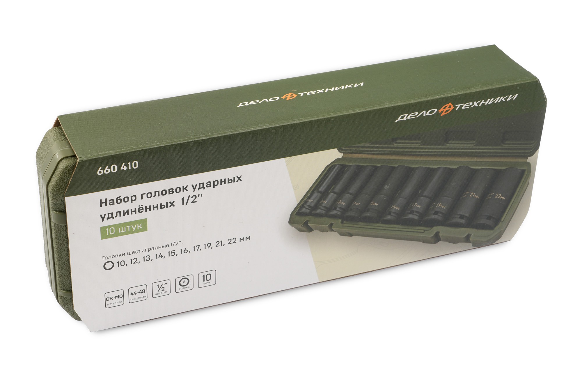Набор головок ударных удлиненных 1/2", 10 шт. ДТ 660410