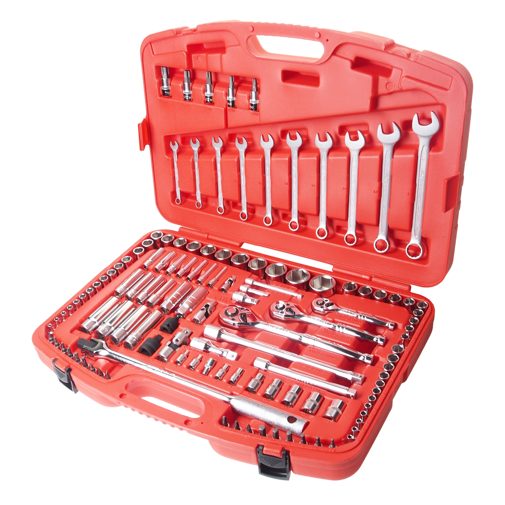 Набор инструментов 123 предмета слесарно-монтажный 1/4",3/8",1/2" 6-ти гран. метрич/дюйм в кейсе JTC