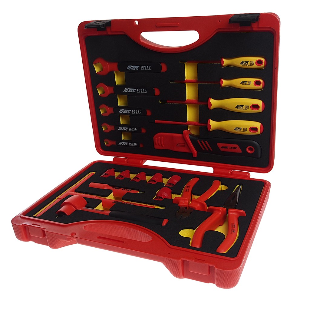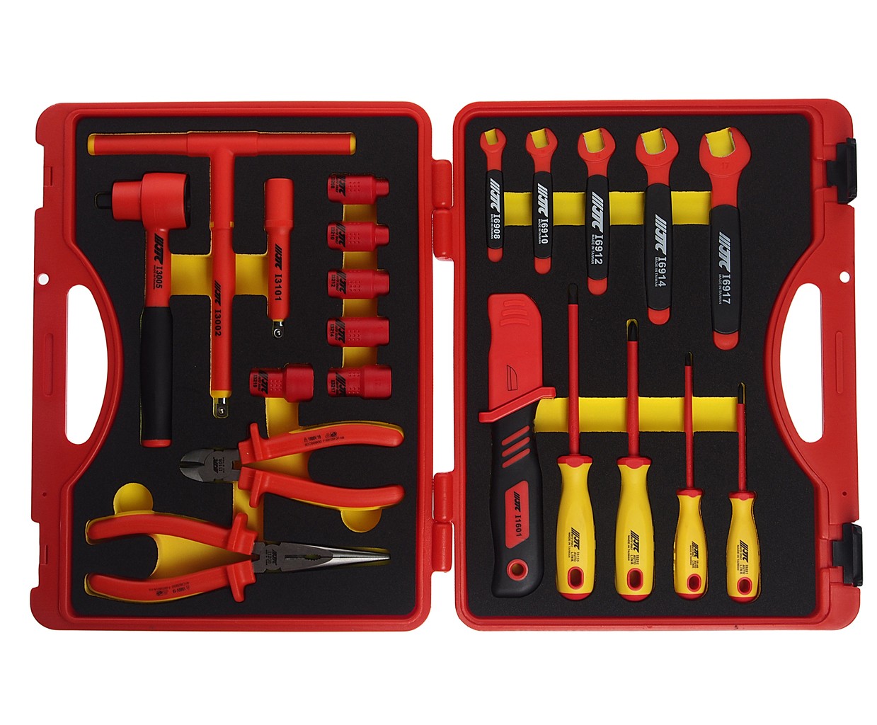 Набор инструментов 22 предмета слесарно-монтажный 3/8" 10-24мм изолированных в кейсе JTC