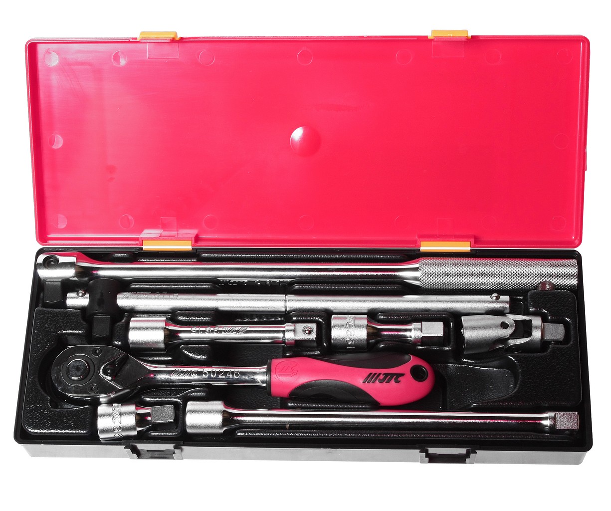 Набор инструментов 8 предметов слесарно-монтажный 1/2" (ключ трещот.,ворот.,удлинит.) в кейсе JTC