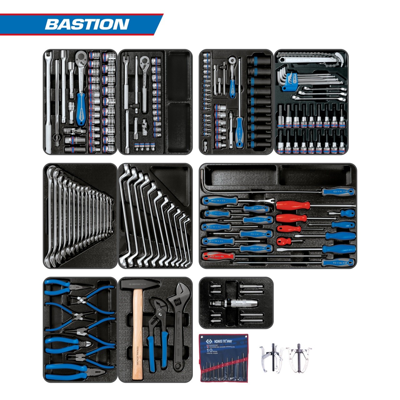Набор инструментов "BASTION" для тележки, 10 ложементов, 204 предмета KING TONY 946-100MRD-MT