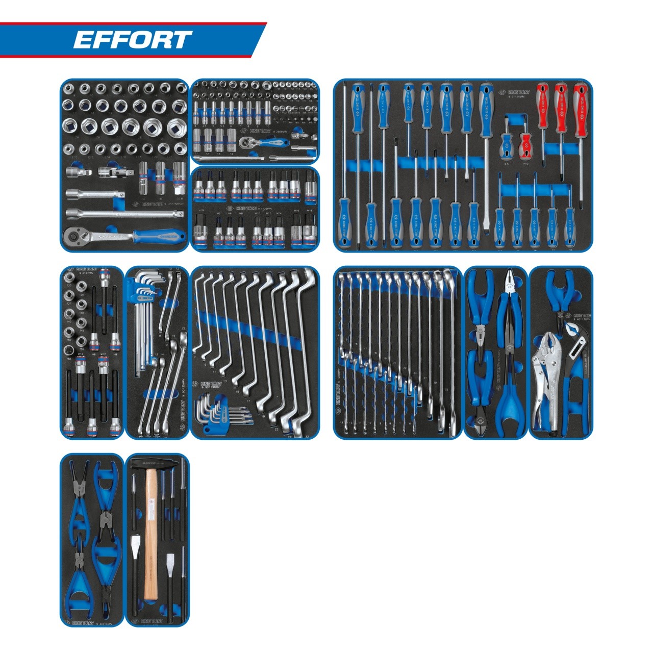 Набор инструментов "EFFORT" для тележки, 12 ложементов, 235 предметов KING TONY 934-235MRVD