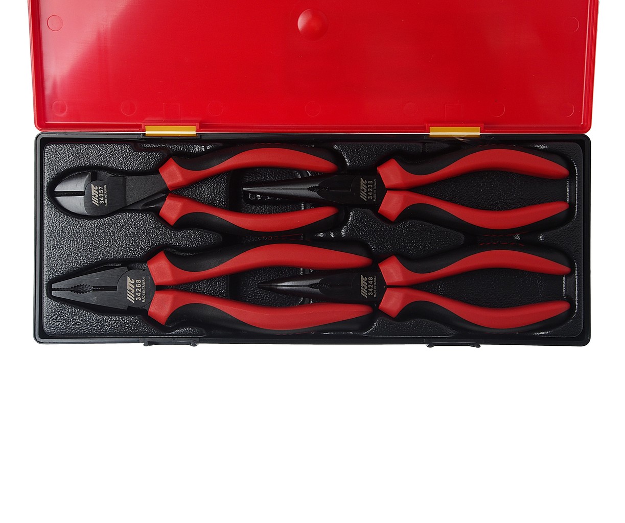 Набор инструментов губцевых 4 предмета (тонкогубцы, пассатижи, бокорезы) в кейсе JTC