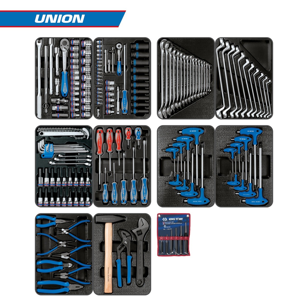 Набор инструментов "UNION" для тележки, 10 ложементов, 173 предмета KING TONY 932-000MRD-MT