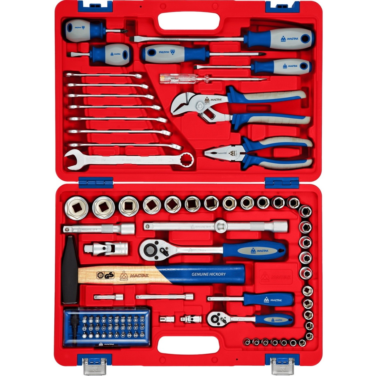 Комплектация Головки и принадлежности 1/2" Головки торцевые стандартные 6-гранные 8, 9, 10, 11, 12, 13, 14, 15, 17, 18, 19, 21, 22, 24, 27, 30, 32 мм Удлинители стандартные 125, 250 мм Трещотка флажковая с кнопкой 45 зубцов, длина 250 мм Кардан 1 шт. Переходник с отверстием для воротка 3/8" х 1/2" Головки и принадлежности 1/4" Головки торцевые стандартные 6-гранные 4, 4.5, 5, 5.5, 6, 7, 8, 9, 10, 11, 12, 13 мм Удлинители стандартные 50, 100 мм Трещотка флажковая с кнопкой 45 зубцов, длина 125 мм Кардан 1 шт. Переходник адаптер для вставок (бит) F1/4 > F1/4" Отвертка-вороток 150 мм Вставки (биты) 1/4" (6.35 мм) Набор вставок с держателем для дрели 31 предмет Ключи Ключи комбинированные 10, 11, 12, 13, 14, 15, 17, 19 мм Отвёртки Крестовые Phillips №2 х 100 мм, №2 х 38 мм Шлицевые Slotted 5.5 х 100 мм, 6.5 х 38 мм, 8.0 х 200 мм Шарнирно-губцевый инструмент Плоскогубцы комбинированные длина 175 мм Захват переставной длина 250 мм Прочий инструм