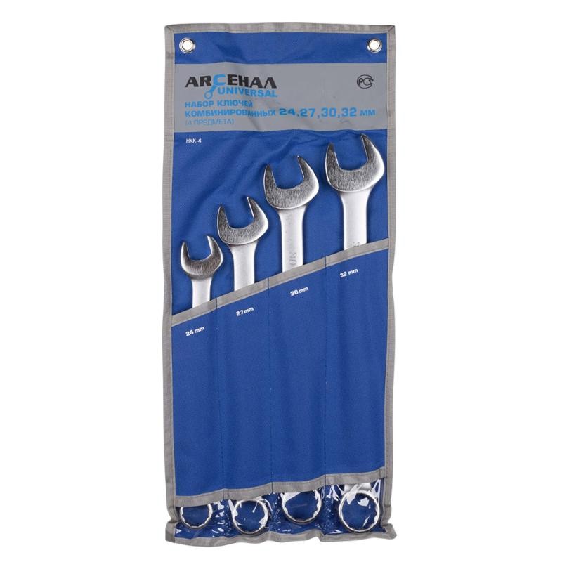 <div class="catalog-product-attributes__white-gradient"></div> Набор комбинированных гаечных ключей Арсенал НКК-4 из высокопрочной стали состоит из четырех предметов. Комплектация: комбинированные ключи, 4 штуки: 24, 27, 30, 32 мм |