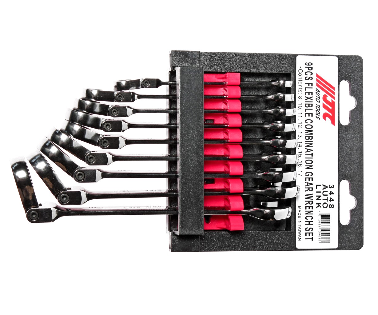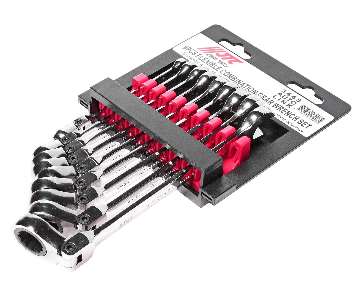 Набор ключей комбинированных трещоточных с подвижной головкой 8-17мм (на холдере) 9 предметов JTC /1/15