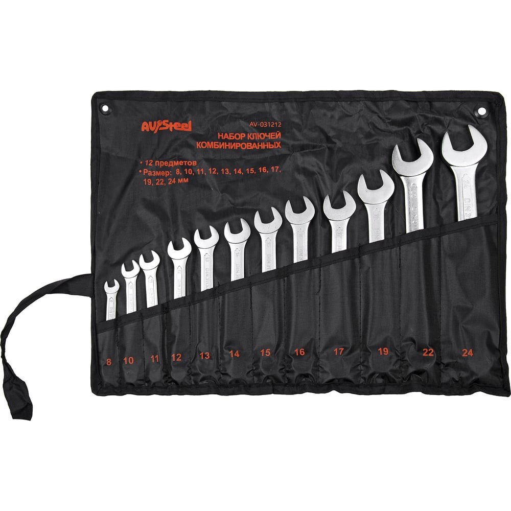 Набор комбинированных ключей AV Steel 8-24 мм, 12 предметов, в сумке