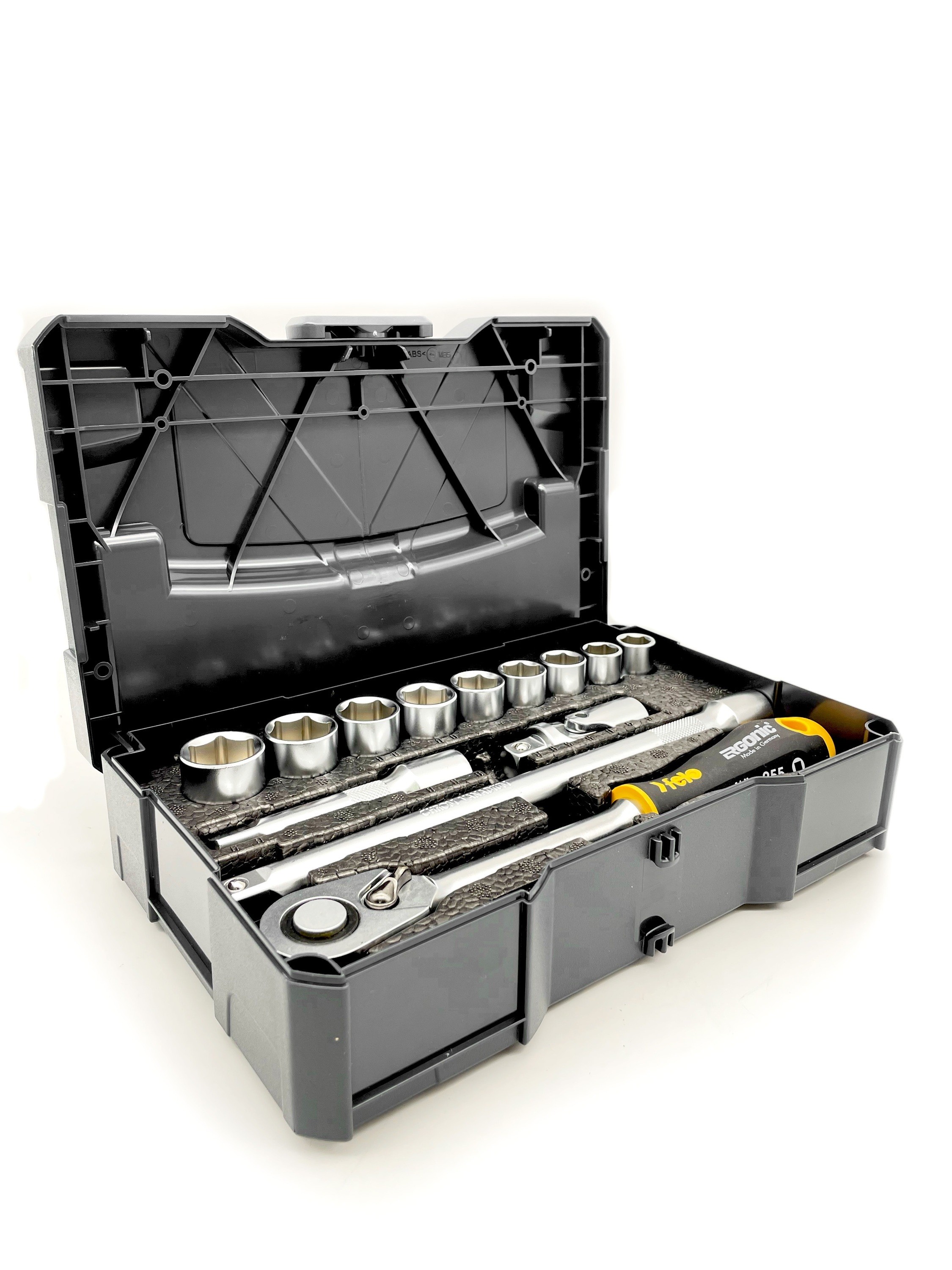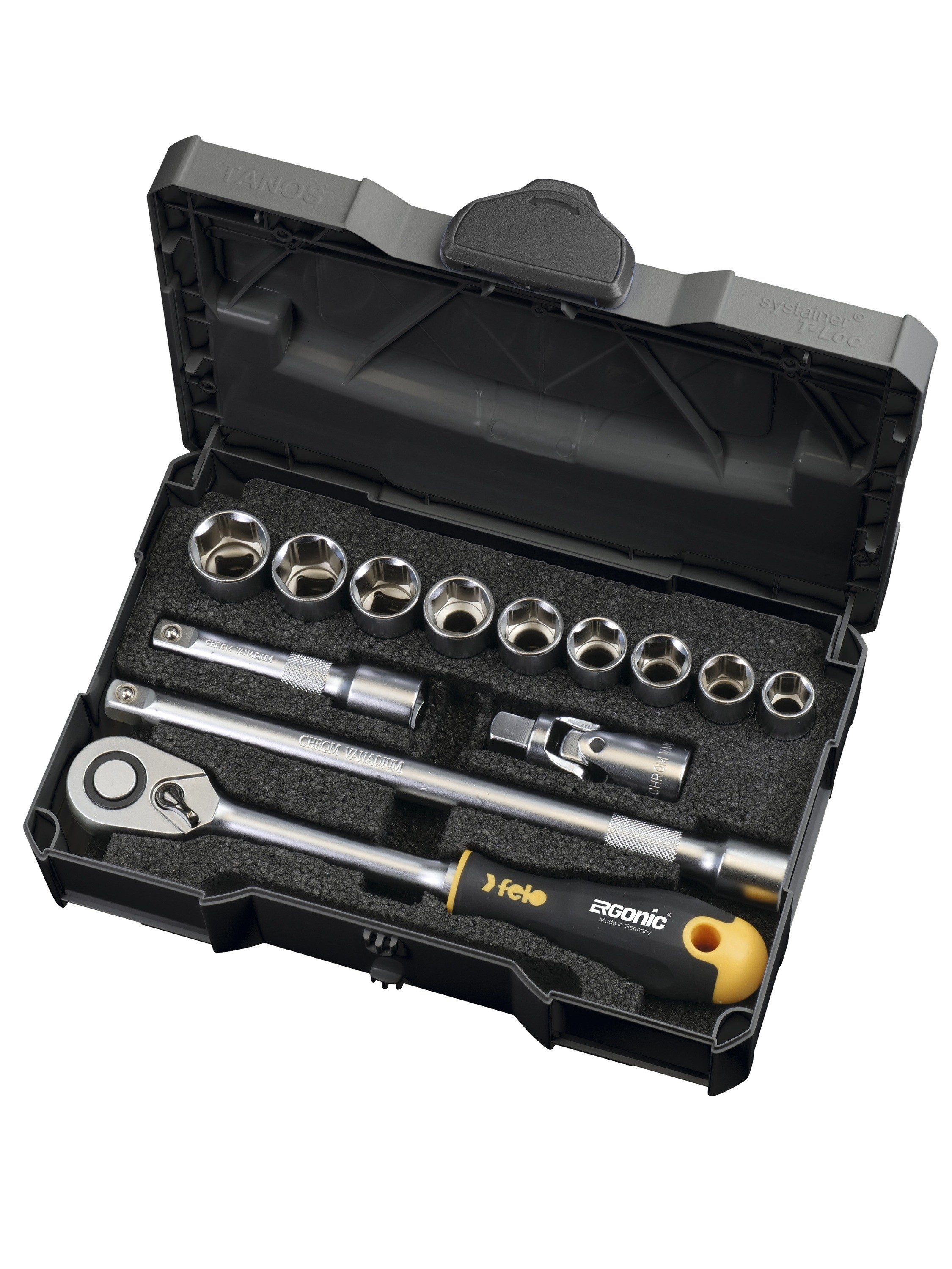 Набор метрических головок 1/2" с удлинённой трещоткой Ergonic в кейсе, 13 шт, Felo 05681318