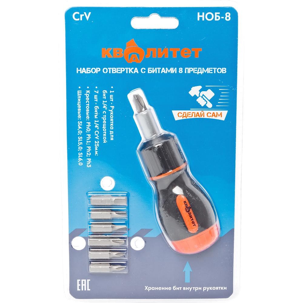 Набор отвертка с битами Квалитет "Сделай сам" 8 предметов НОБ-8