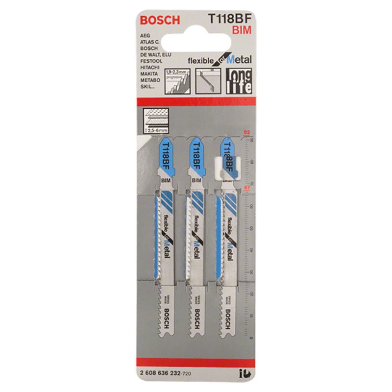 Набор пилок для лобзика по металлу Bosch T118BF BIM 92мм 3шт (232)