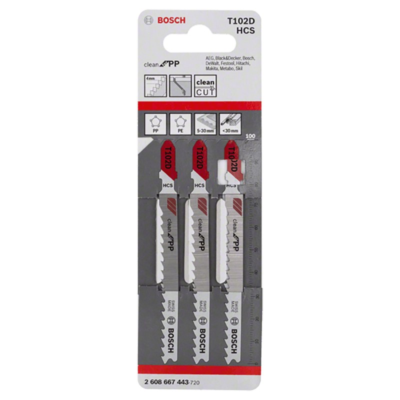 Набор пилок для лобзика по полипропилену Bosch T102D CleanPP 100мм 3шт (443)