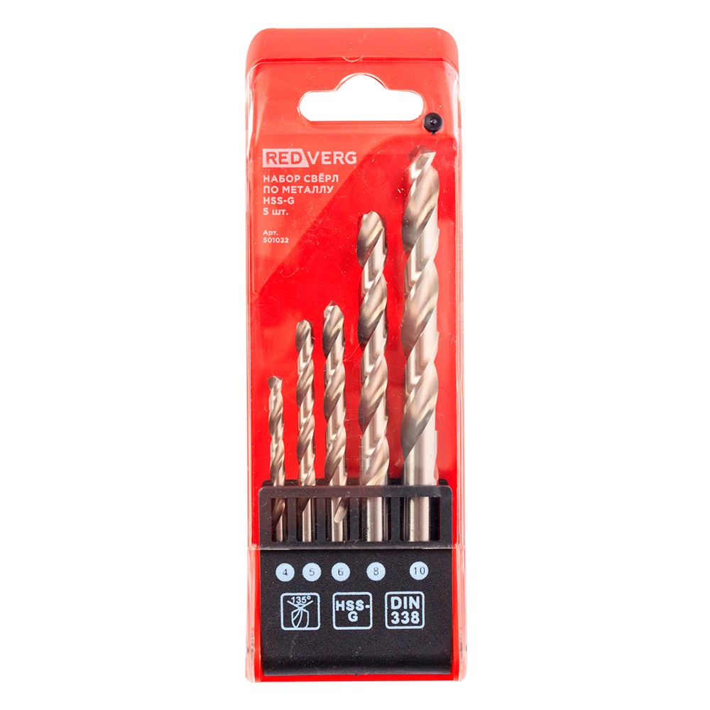Набор сверл по металлу REDVERG HSS-G 4-10мм 5шт (501032)