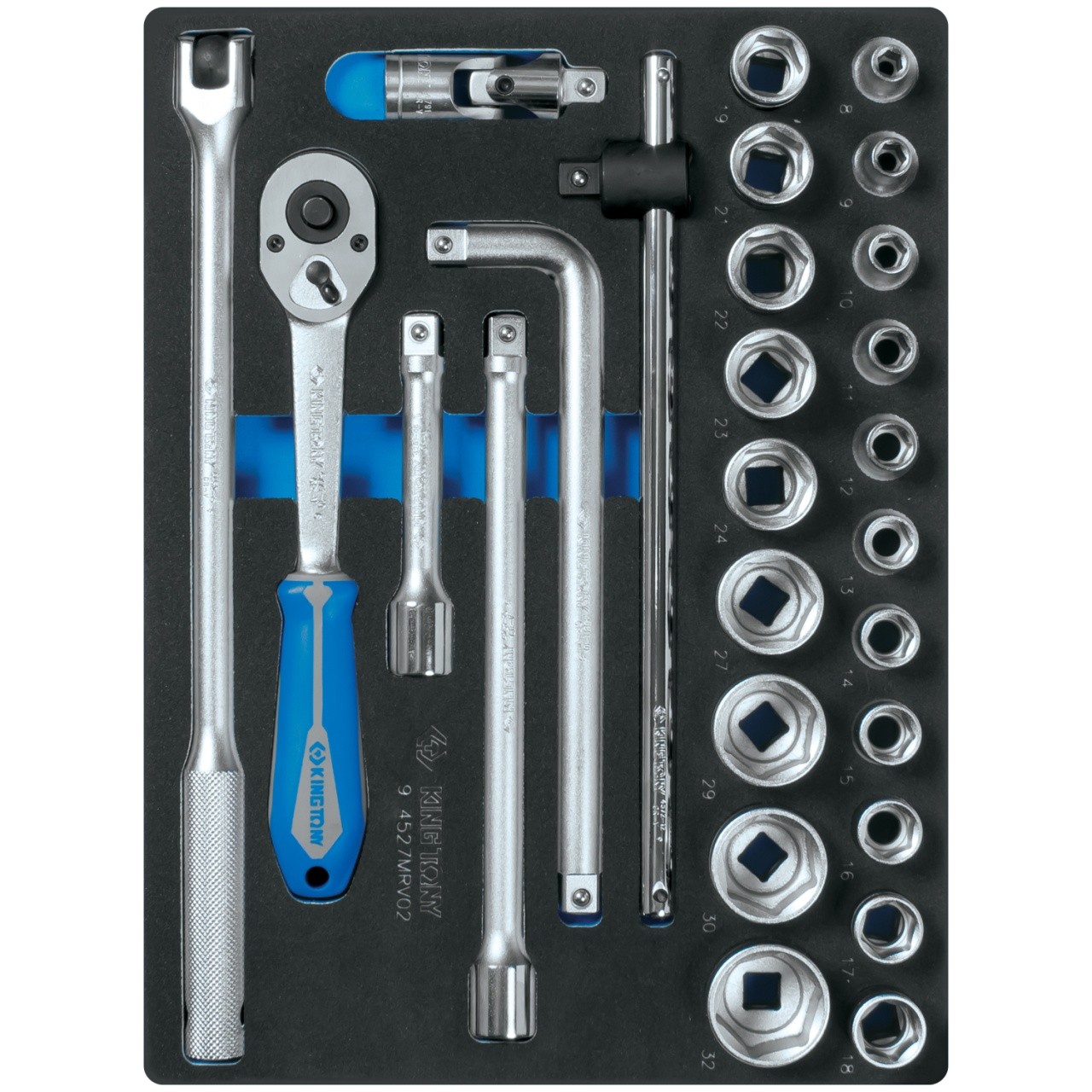 Набор торцевых головок 1/2" с принадлежностями, ложемент, 27 предметов KING TONY 9-4527MRV02