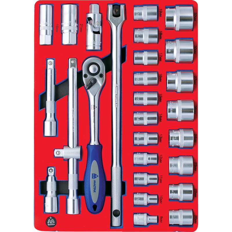 Набор торцевых головок 1/2" с принадлежностями, шестигранные, ложемент, 28 предметов МАСТАК 5-004028