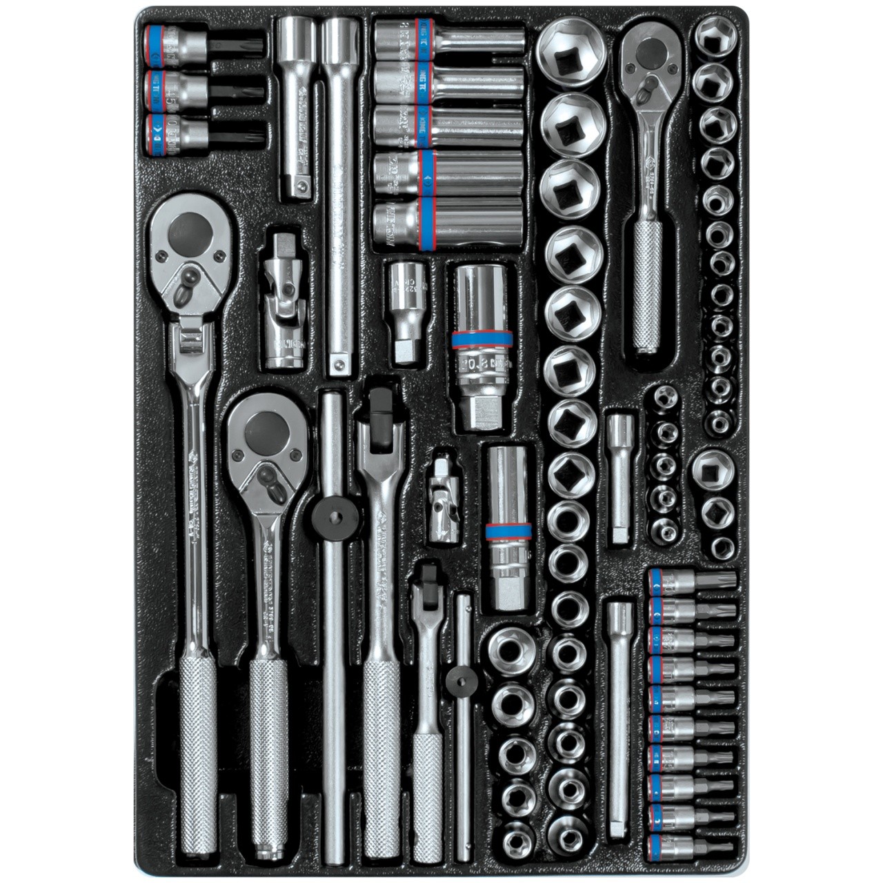 Набор торцевых головок 1/4", 3/8" с принадлежностями, ложемент, 75 предметов KING TONY 9-5575MR