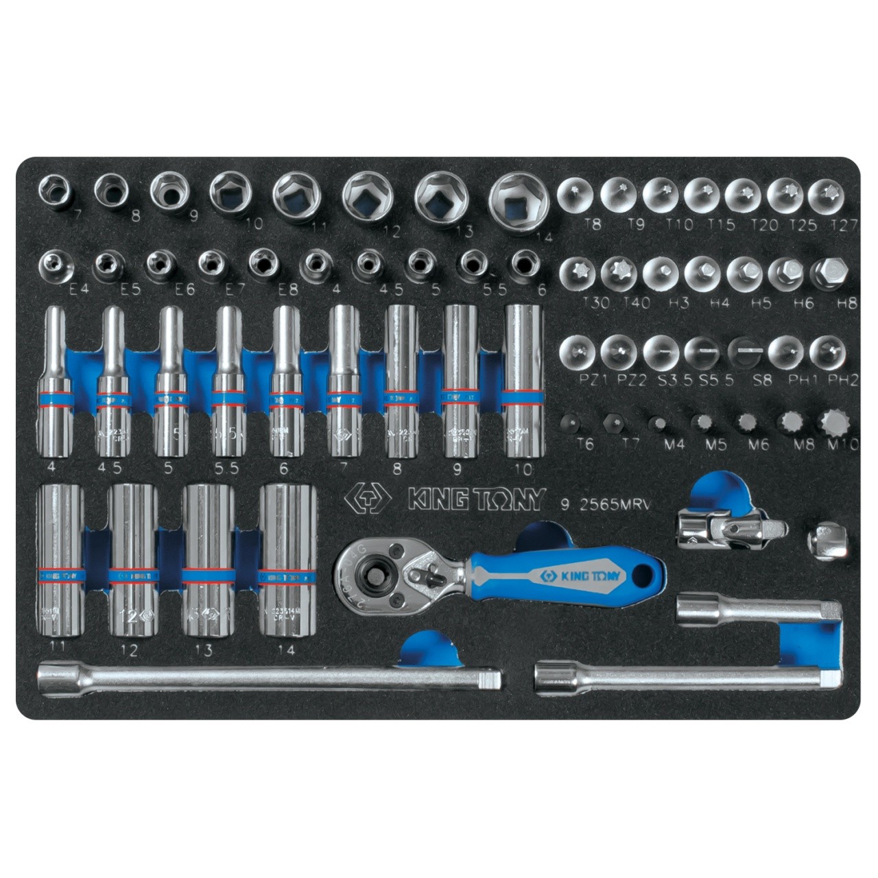 Набор торцевых головок 1/4" с принадлежностями, ложемент, 65 предметов KING TONY 9-2565MRV