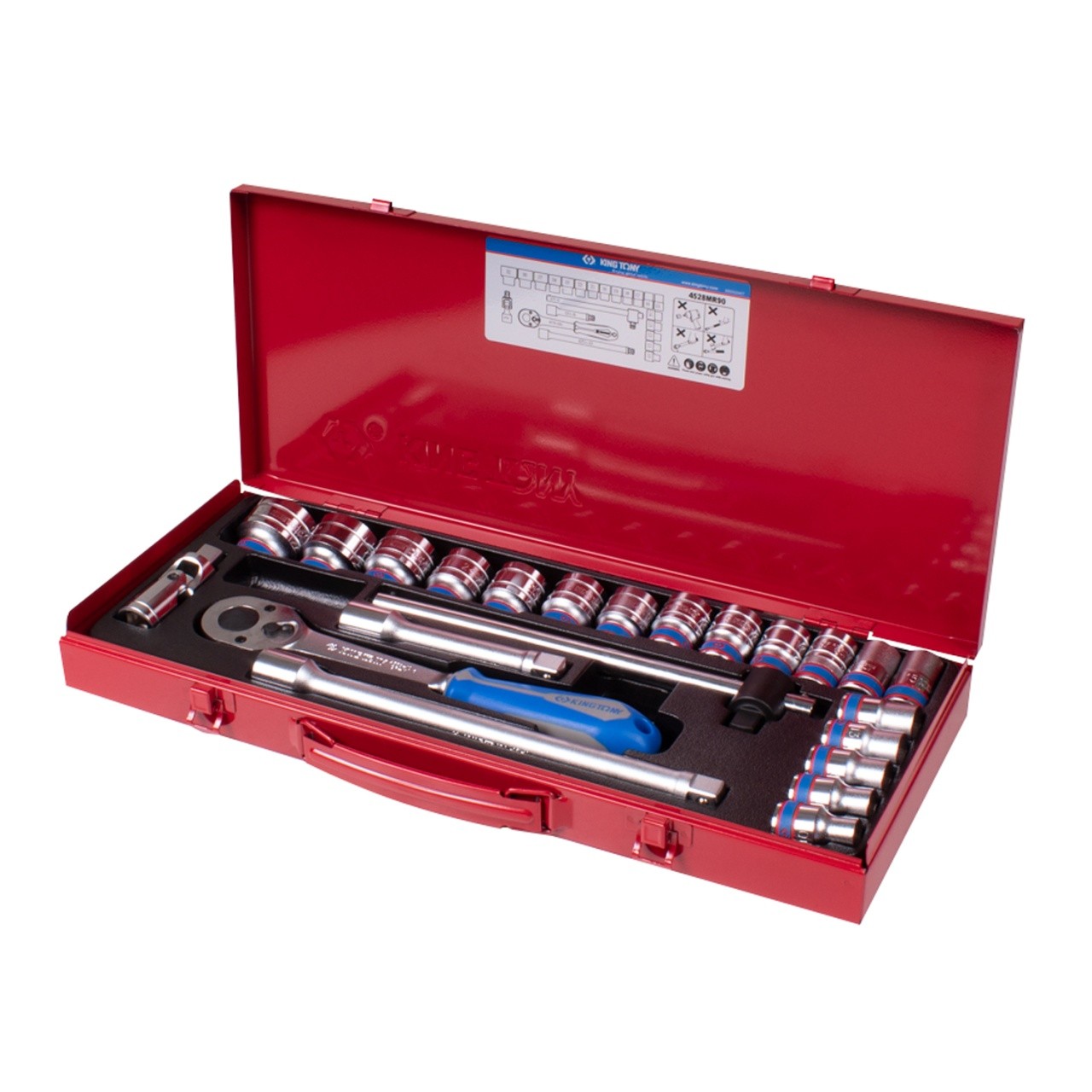 Набор торцевых головок с принадлежностями 1/2", шестигранные, 10-32 мм, 23 предмета KING TONY 4528MR