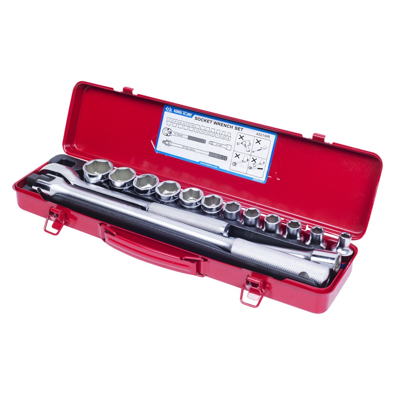 Набор торцевых головок с принадлежностями 1/2", шестигранные, 8-27 мм, 15 предметов KING TONY 4501MR
