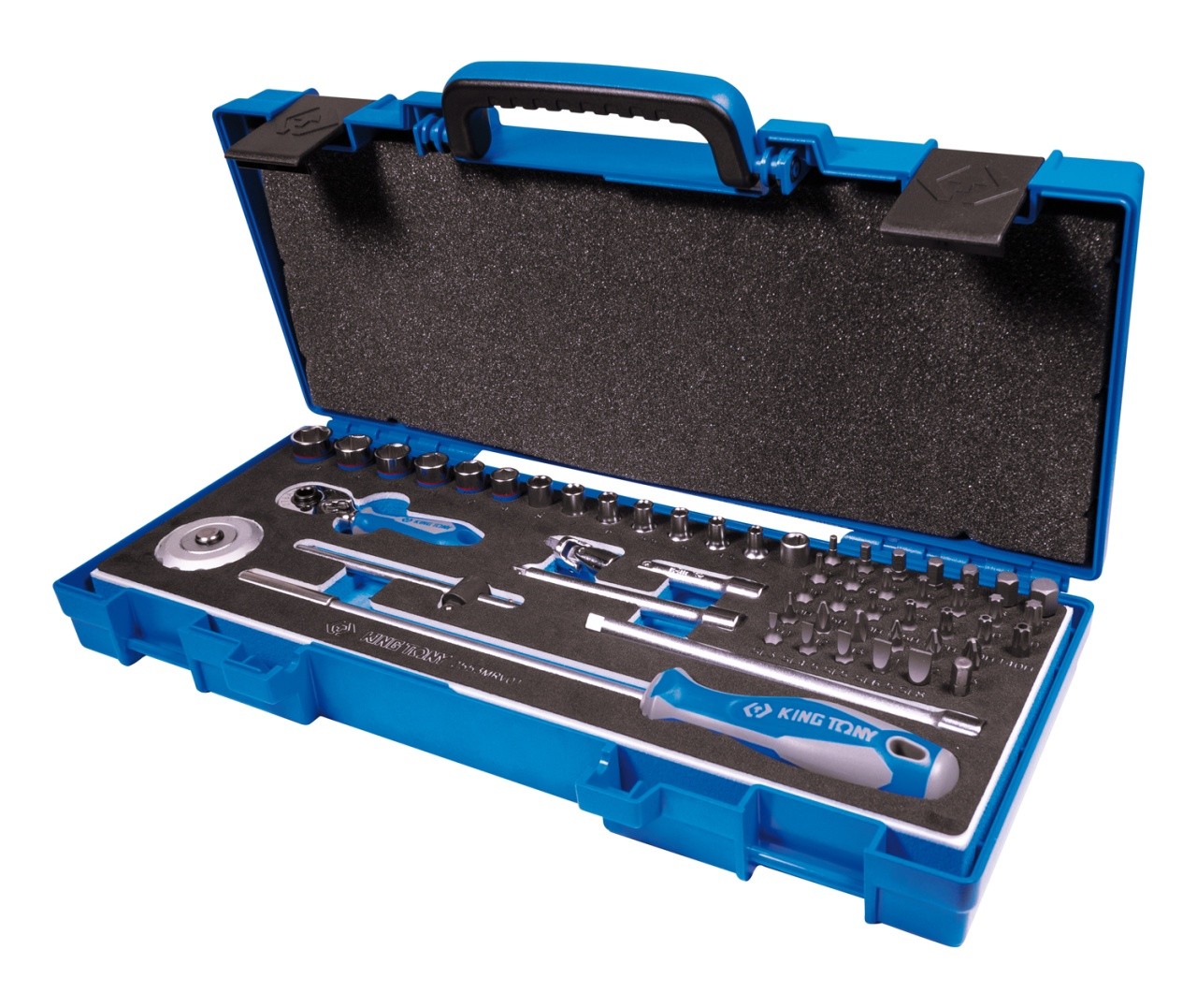 Набор торцевых головок с принадлежностями 1/4", шестигранные, 4-14 мм, 55 предметов KING TONY 2553MR
