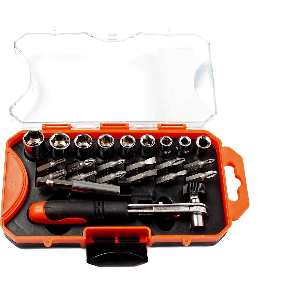 Набор трещотка с битами и головками Квалитет "Сделай сам" 23 предмета (пластиковый футляр)