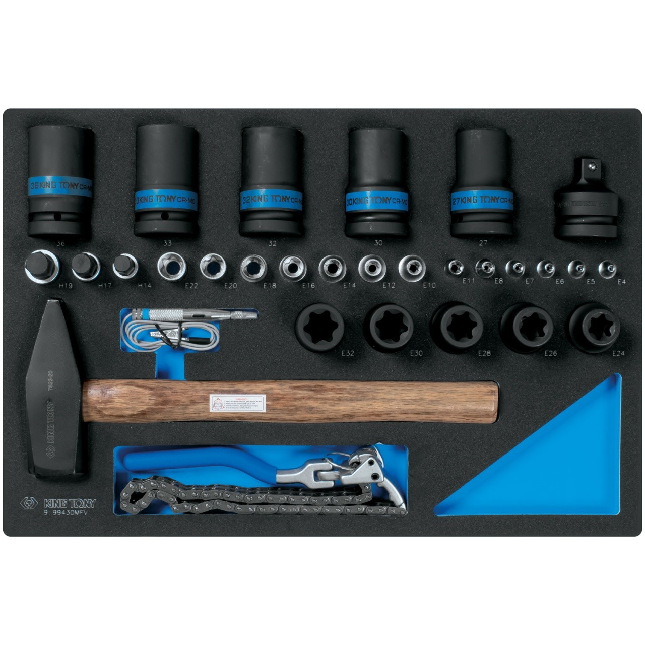 Набор ударных головок 1", головок Torx Е-стандарт, молоток, съемник, тестер, ложемент, 30 предметов