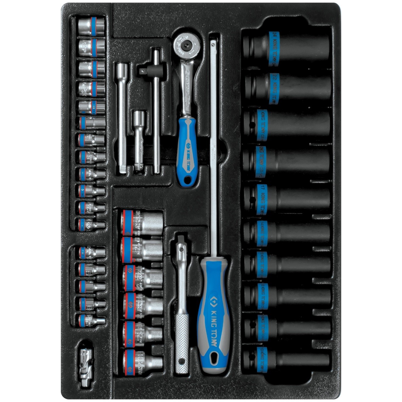 Набор ударных головок 1/2" и торцевых головок 1/4" с принадлежностями, ложемент, 40 предметов KING T