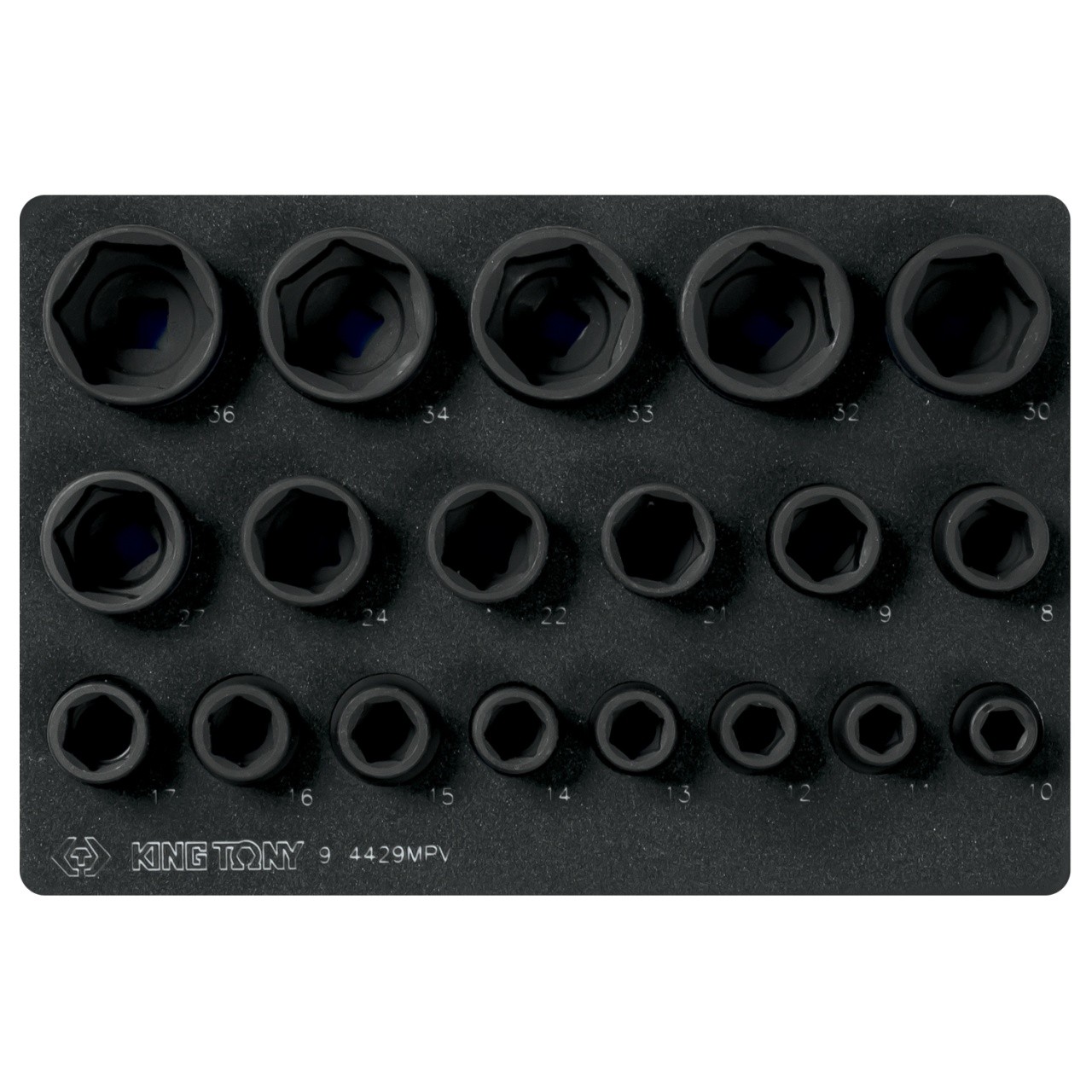 Набор ударных торцевых головок 1/2", шестигранные, 10-36 мм, ложемент, 19 предметов KING TONY 9-4429