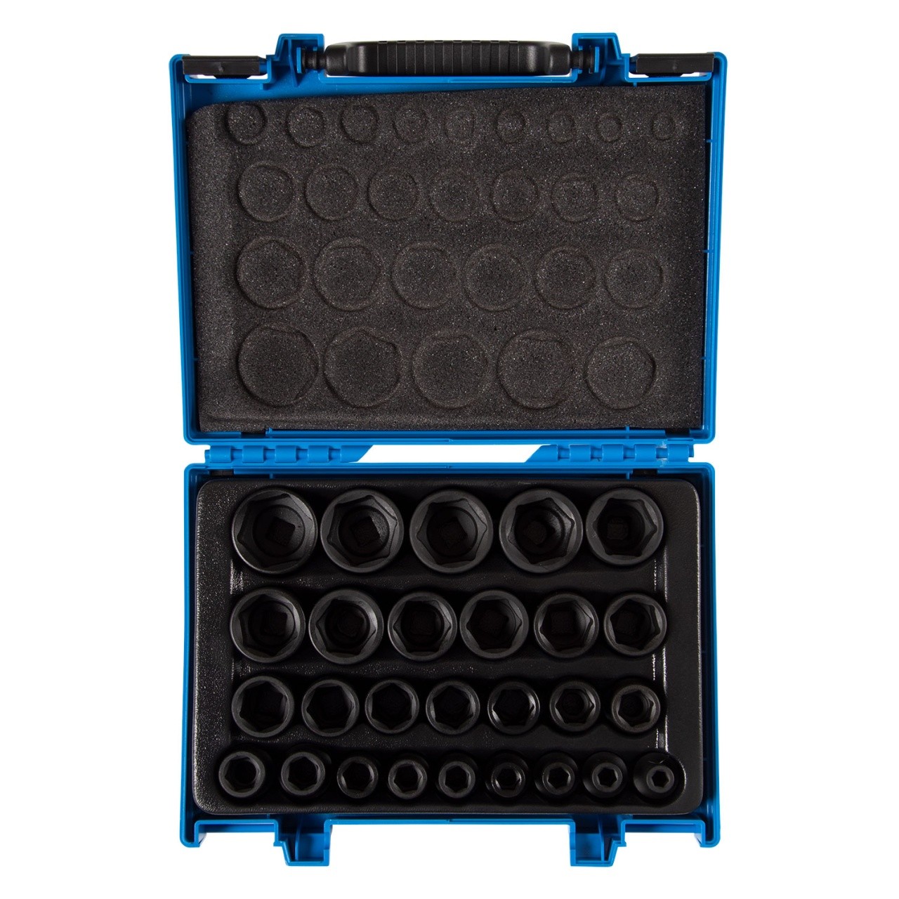 Комплектация – Головки торцевые ударные 6-гранные 1/2", размеры 8, 9, 10, 11, 12, 13, 14, 15, 16, 17, 18, 19, 20, 21, 22, 23, 24, 25, 26, 27, 28, 29, 30, 32, 33, 34, 36 (4535M) – Ложемент 280 x 187 мм (№7) – Кейс из пластика ABS (820001) Посадочный квадрат – 1/2" Материалы – инструментальная сталь Cr-Mo, фосфатное покрытие, PVC (ложемент), ABS (кейс) Размеры кейса – 294 x 231 x 66 мм Вес – 4,09 кг