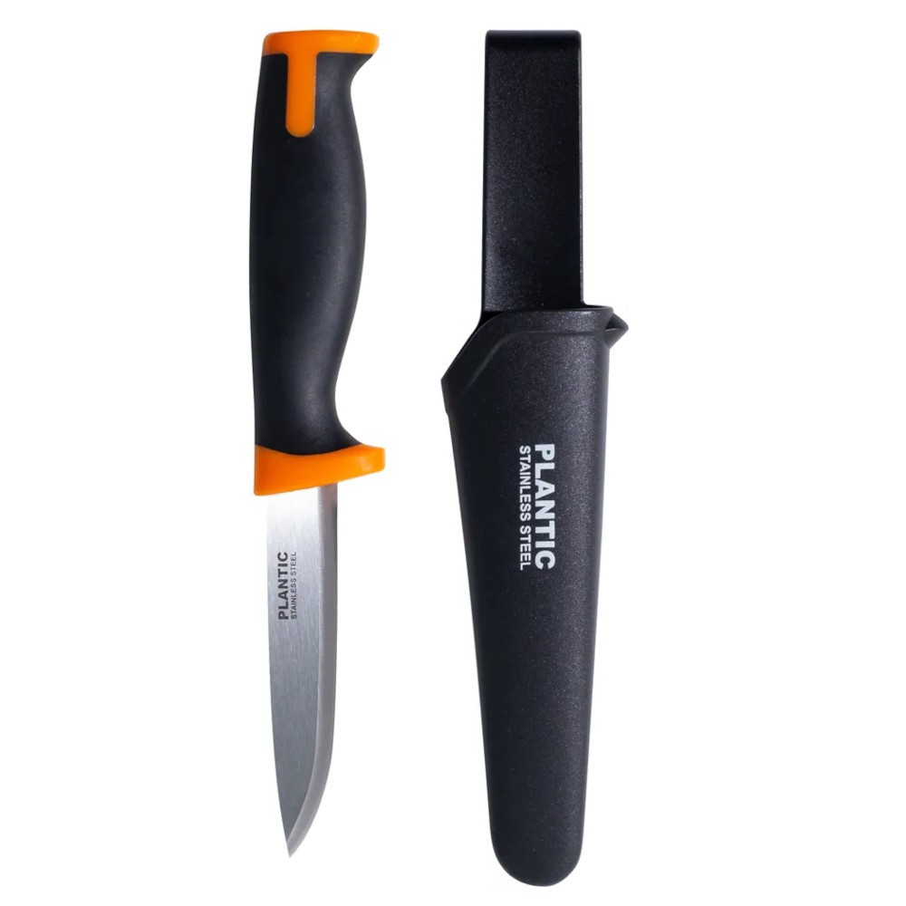 <div class="catalog-product-attributes__white-gradient"></div> Нож универсальный Plantic 27401-01 с пластиковыми ножнами подходит для резки различных материалов, а также для подрезки цветов и растений. Лезвие изготовлено из нержавеющей стали, пластиковая рукоятка прорезинена в области хвата. |