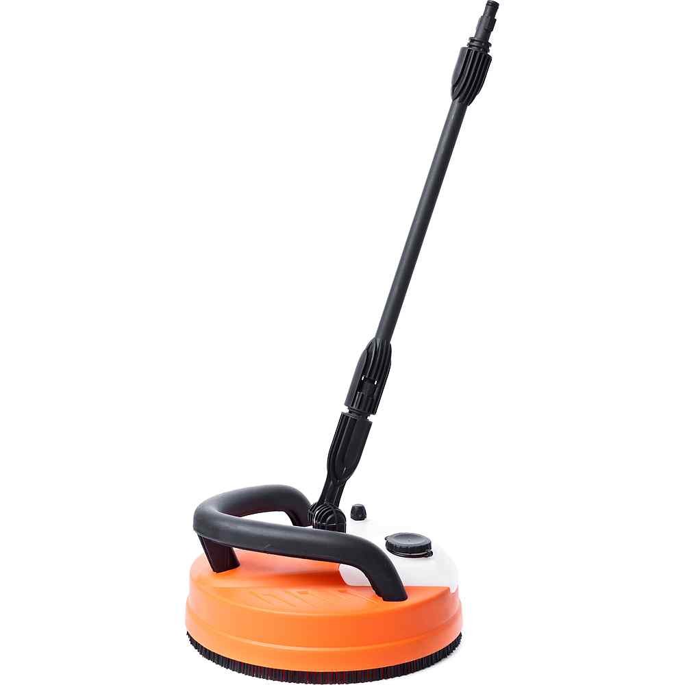 Удобная рукоятка. Вращающееся веерное сопло высокой производительности. Встроенный бачок для моющего средства. Регулятор подачи моющего средства. |