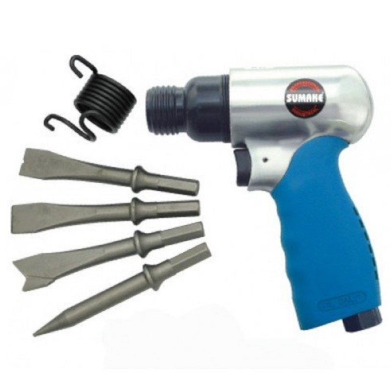 Отбойный молоток пневматический Sumake ST-M3008/H + Зубило 4шт предназначен для разрушение различных материалов путем ударного действия. Металлический корпус и пистолетная форма идеально подходят для эксплуатации в тяжелых условиях производства. Используется как для отбойных, так и зачистных работ